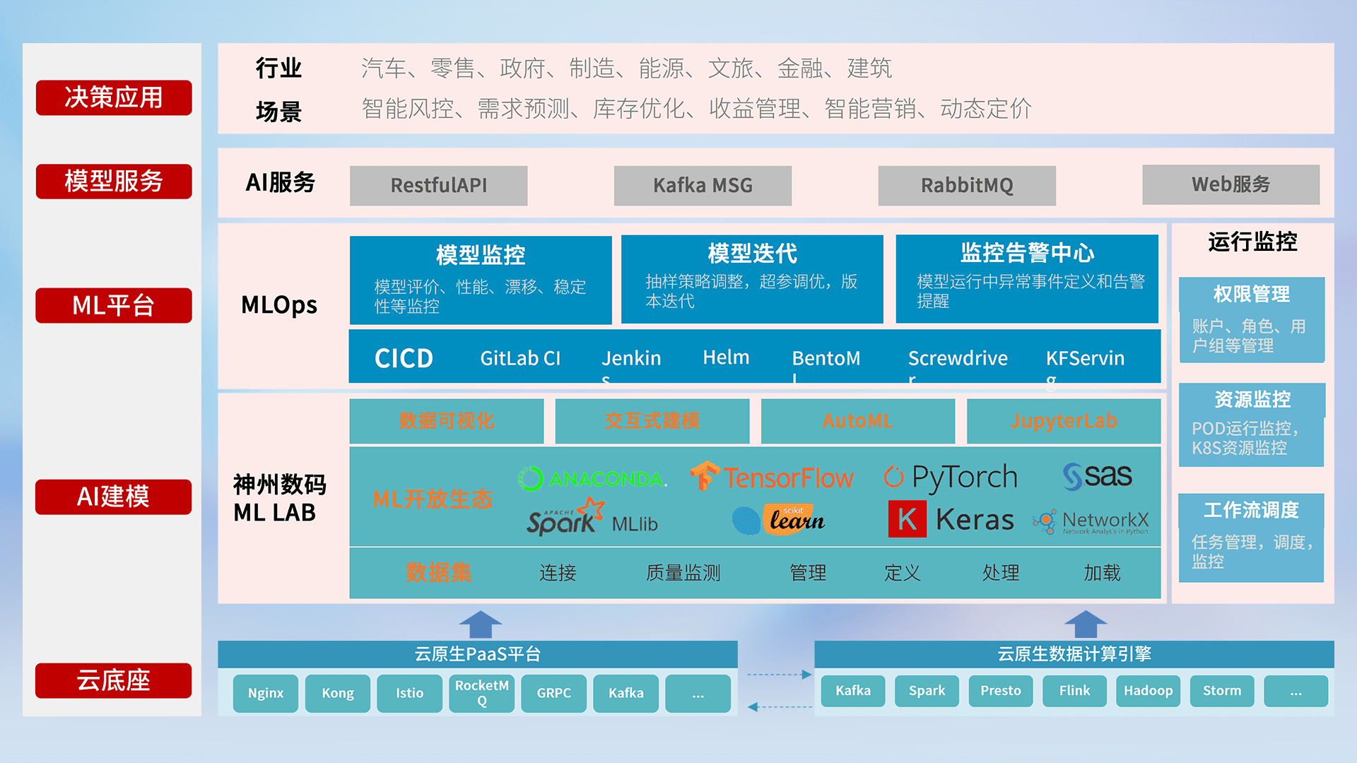 数据+模型双引擎驱动,,面向智能服务场景,,快速灵活利用AI技术,,支持业务决策,,,助力企业智能化转型破局。。。